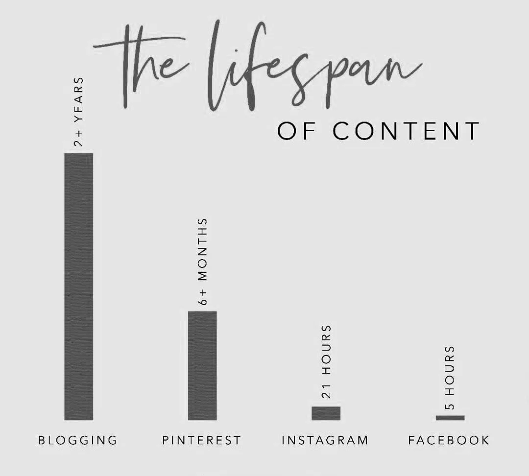 As you can see there is a lifespan of content, the shortest being on social media channels. That’s why you keep hearing “post every day on social media…”