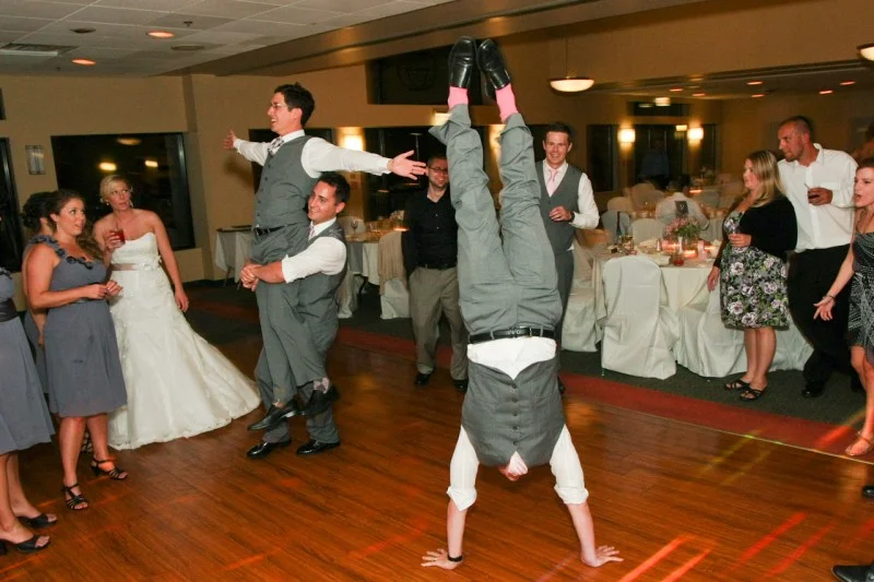 Following the ceremony, the wedding party jumped into a trolley and made their way Kruse Park in Muskegon where Rob and Lindsey spend time together with their adorable dogs. With the sun setting and such a gorgeous setting, it was hard to take a bad photograph. Following the park it was off to Muskegon Country Club for their reception overlooking Muskegon Lake. The evening included traditional first dances, but evolved into groomsmen doing back flips and handstands around the dance floor.